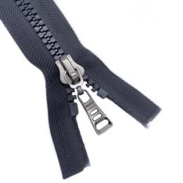 • Двухзамковые – разъемные, с двумя бегунками. Их применяют в длинных пуховиках, халатах для удобства эксплуатации вещей. Такой замок можно расстегнуть как сверху так и снизу, таким образом регулируя высоту разреза подола одежды.